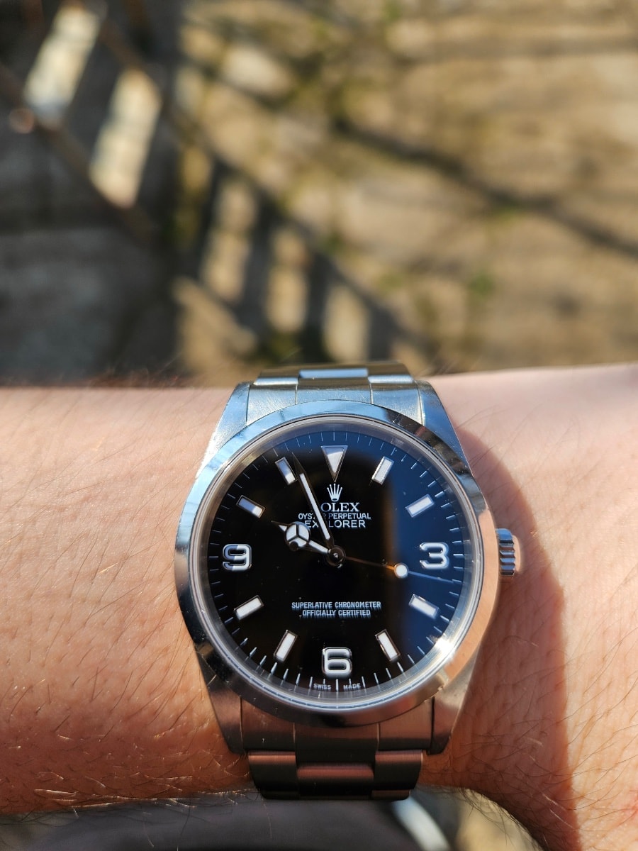 The quintessential tool watch, defined by its minimalist 3-6-9 black dial and rugged 36mm Oyster case. It is the purest expression of Rolex's 'form follows function' philosophy, designed for ultimate legibility…
