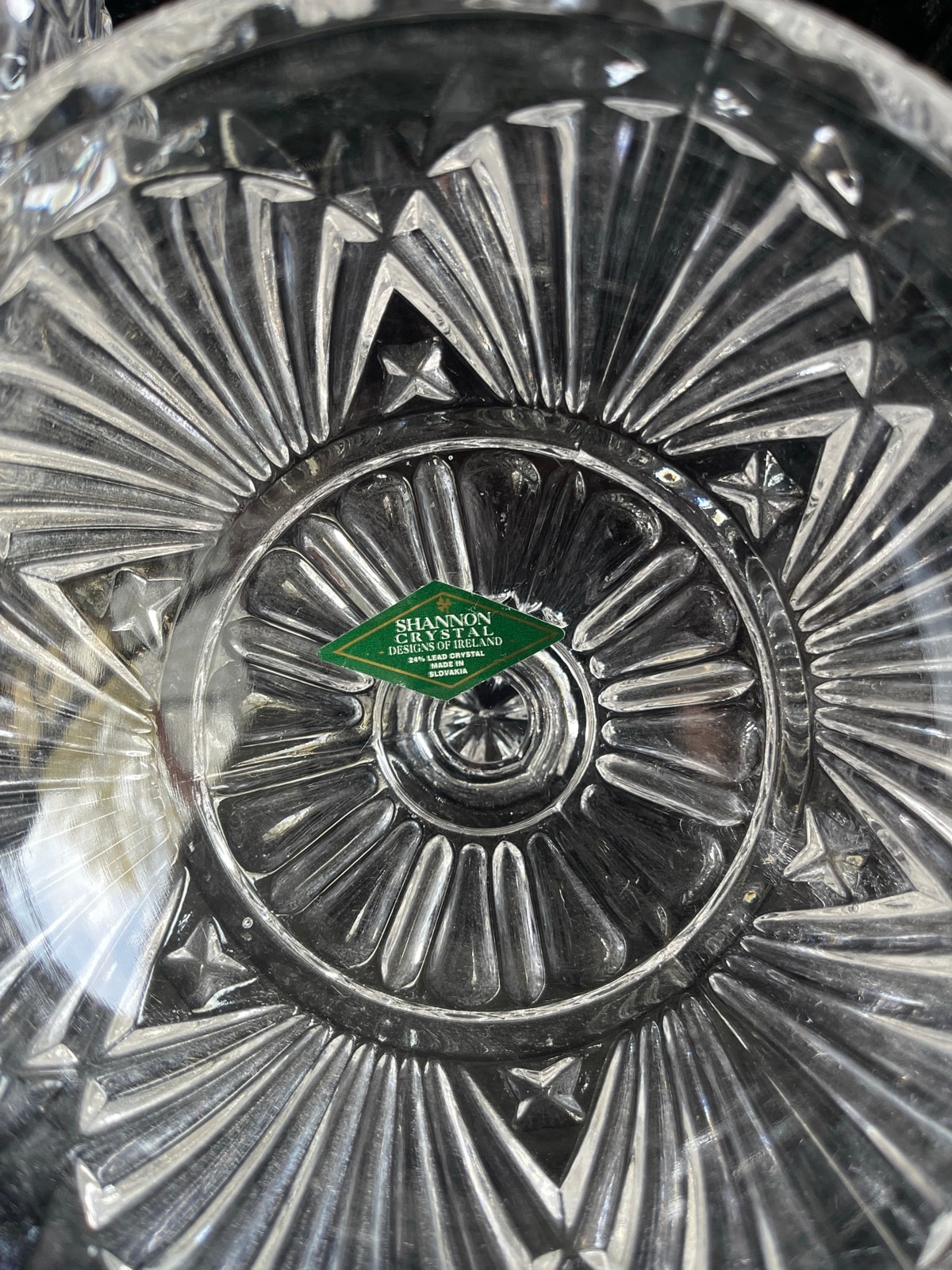 A classic 24% lead crystal footed candy dish featuring deep wedge and diamond cuts designed to maximize light refraction.