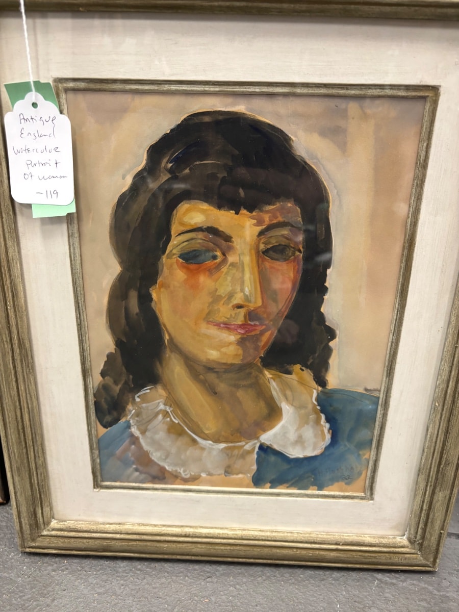 The watercolor appears to be in good vintage condition with some minor toning to the paper consistent with age. The frame is a later addition but complements the piece well; excellent preservation of the paper would command the higher end of the range.