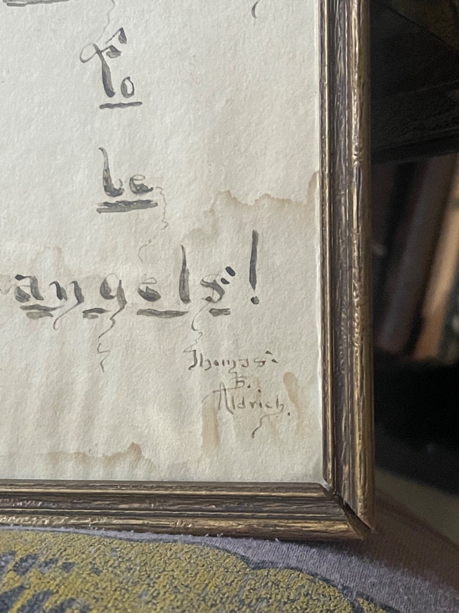 While the quote belongs to Aldrich, the artist is an unidentified but skilled hand, likely a student of the Arts and Crafts movement which revived interest in medieval-style calligraphy.