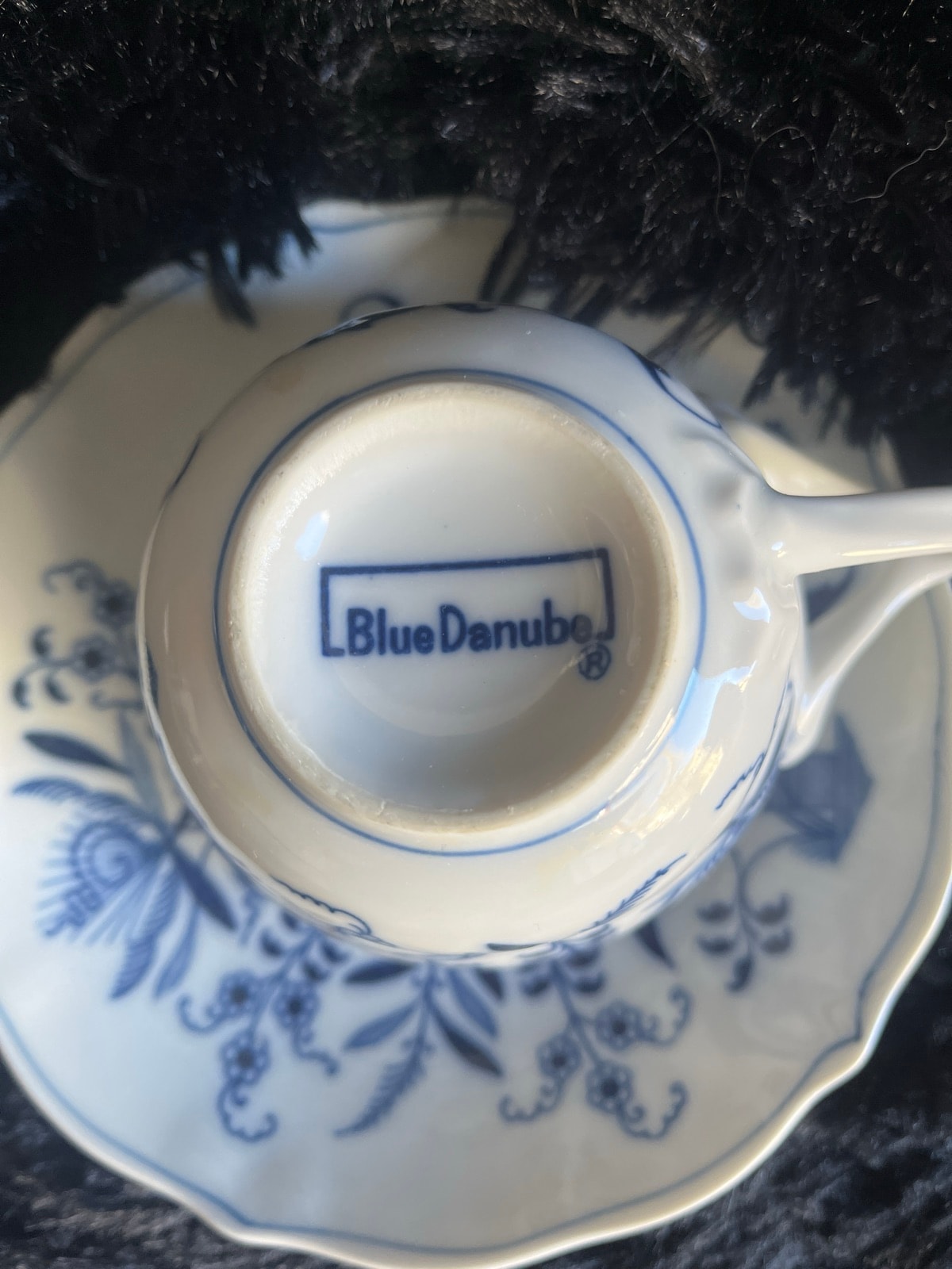 A classic example of Blue Danube dinnerware, featuring the iconic underglaze blue floral motifs inspired by 18th-century Meissen 'Blue Onion' designs.