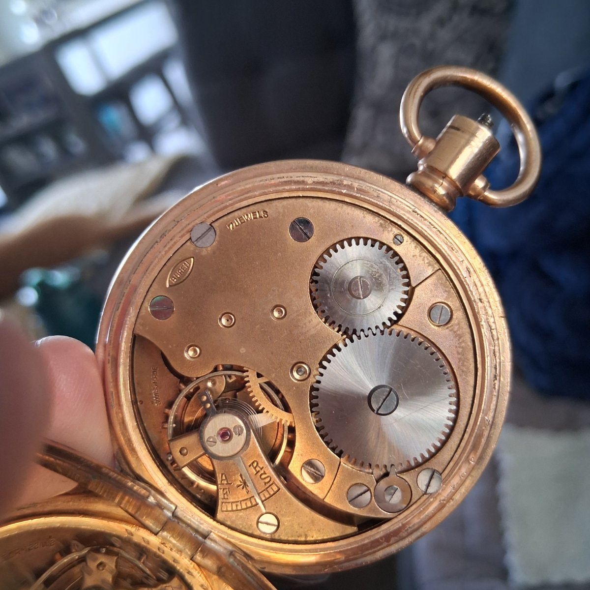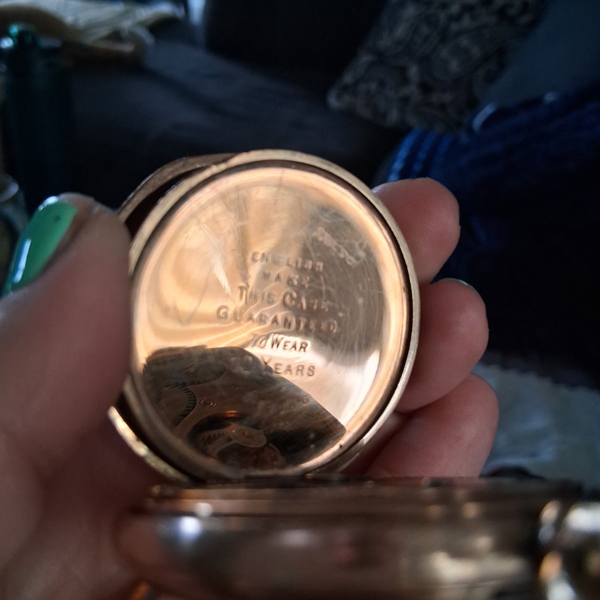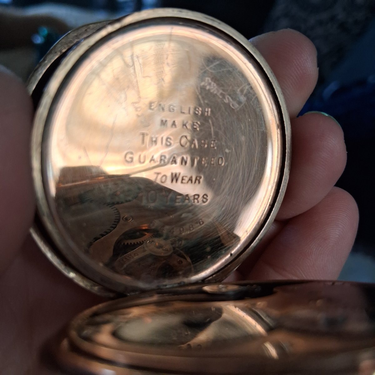 A classic open-face pocket watch featuring a reliable Swiss-made Buren movement housed in a durable English-made gold-filled case.