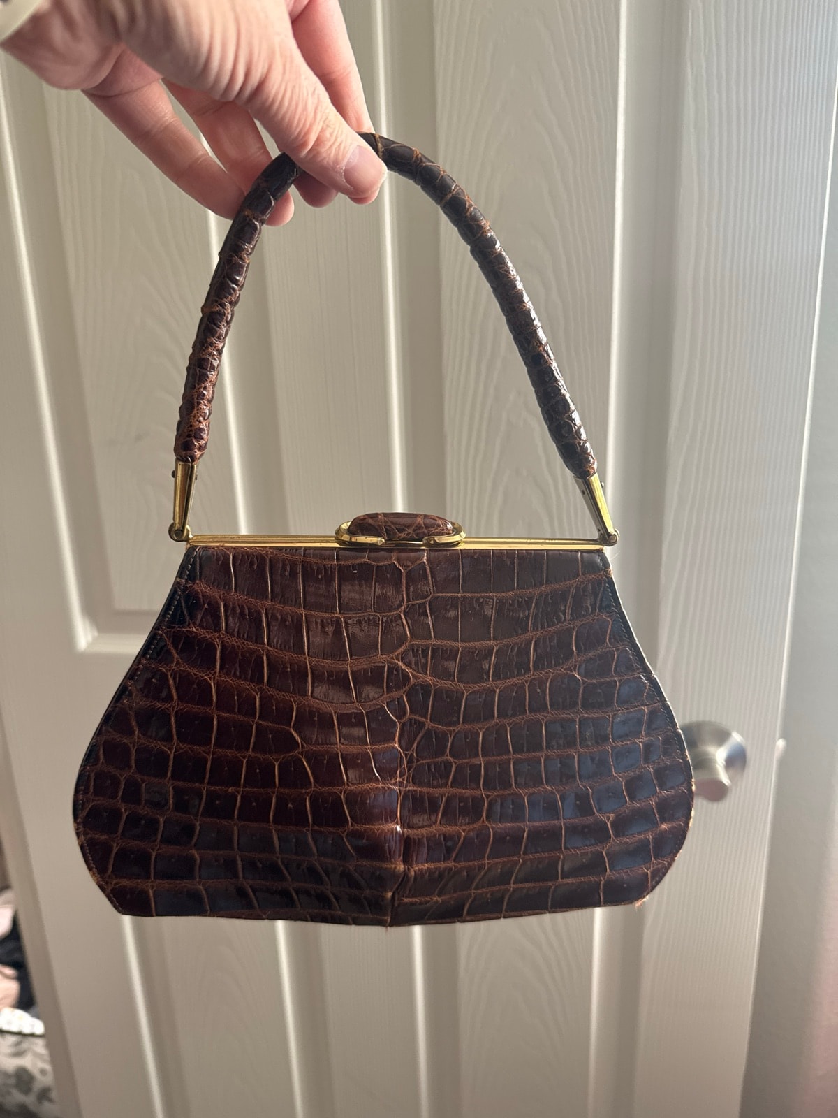 Post-war Belgium was a hidden powerhouse of luxury leatherwork, rivaling Paris in quality. This bag represents the height of 1950s 'status' dressing, where a woman's handbag was her most visible social calling card. The use of large-scale belly skin indicates this was a premier piece for its time.