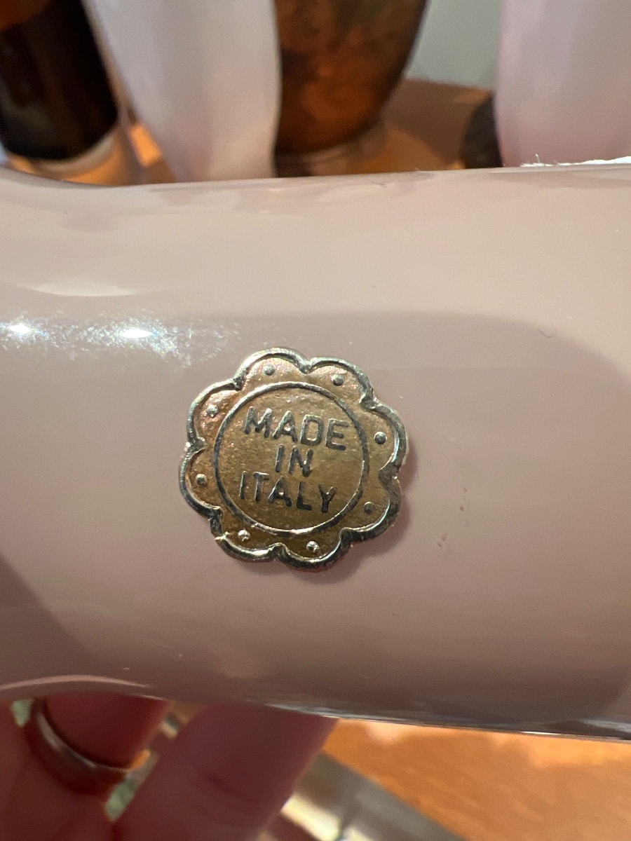 While the generic scalloped foil sticker was used by various export firms, these are highly characteristic of the workshops in Empoli or Murano.