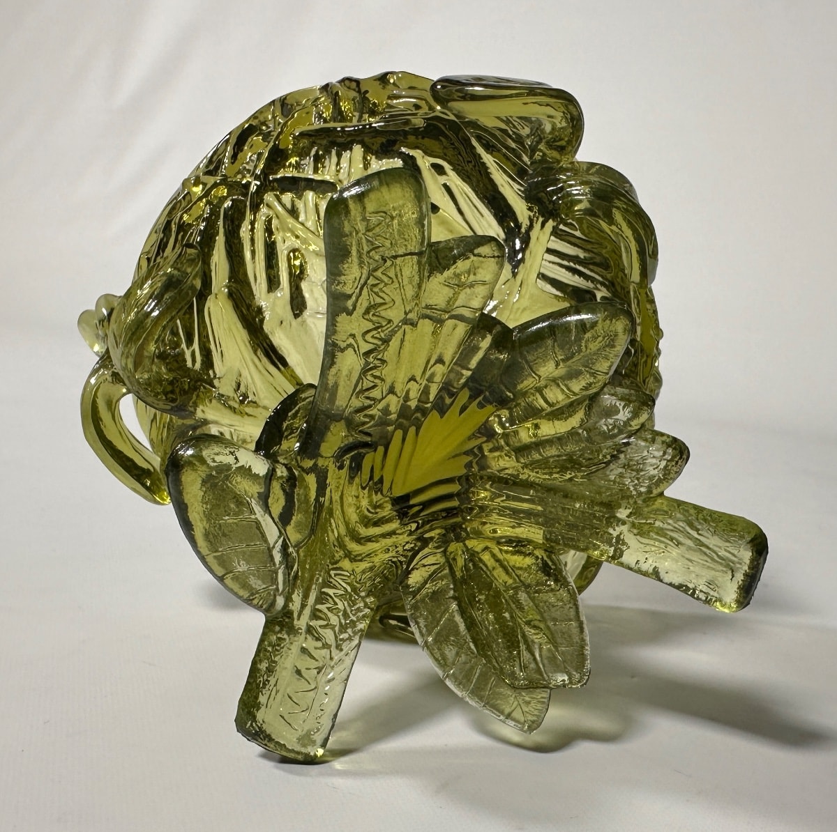 Westmoreland Glass began producing these whimsical figural dishes in the late 19th century, but they saw a massive resurgence in popularity during the 1950s and 60s as American housewives embraced 'Early American' decor.