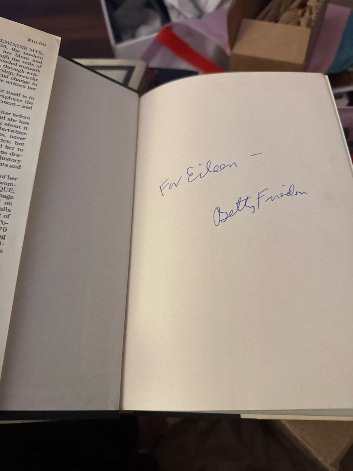 A first edition, first printing of Betty Friedan's seminal collection of essays and memoirs documenting the evolution of the women's movement. This specific copy features a personal inscription and signature from the author on the front flyleaf.