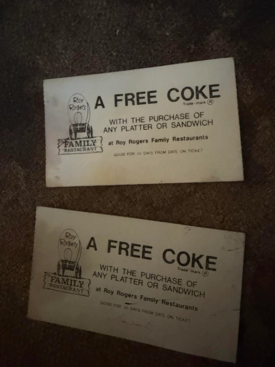mediumElvis Presley concert tickets are frequently reproduced or counterfeited due to high collector demand. While the specific staining, foxing, and regional Roy Rogers coupon strongly suggest authentic age and origin, high-value music ephemera always carries baseline forgery risk. Professional authentication (e.g., PSA) is recommended to maximize buyer confidence.