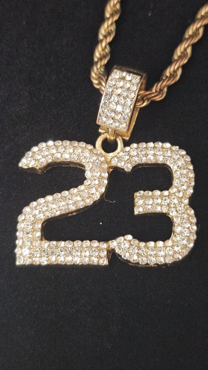 The number 23 became a global symbol of excellence after Michael Jordan debuted it for the Bulls in 1984. This pendant captures the 'bling' era's obsession with sports royalty and the desire to wear a hero's legacy.