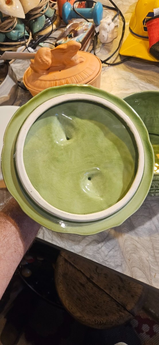 The exterior shows beautiful 'crazing' (fine surface cracks), which is common and often desired in old majolica. However, there is significant glaze loss or 'flaking' on the interior bottom of the dish, which reduces the value and suggests it should be used for display rather than food service.