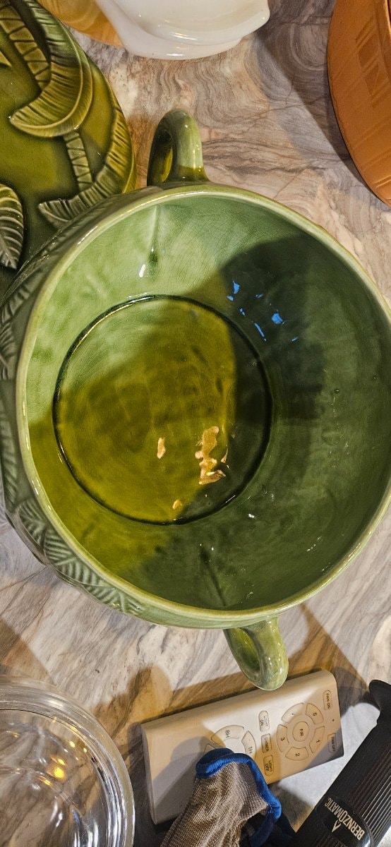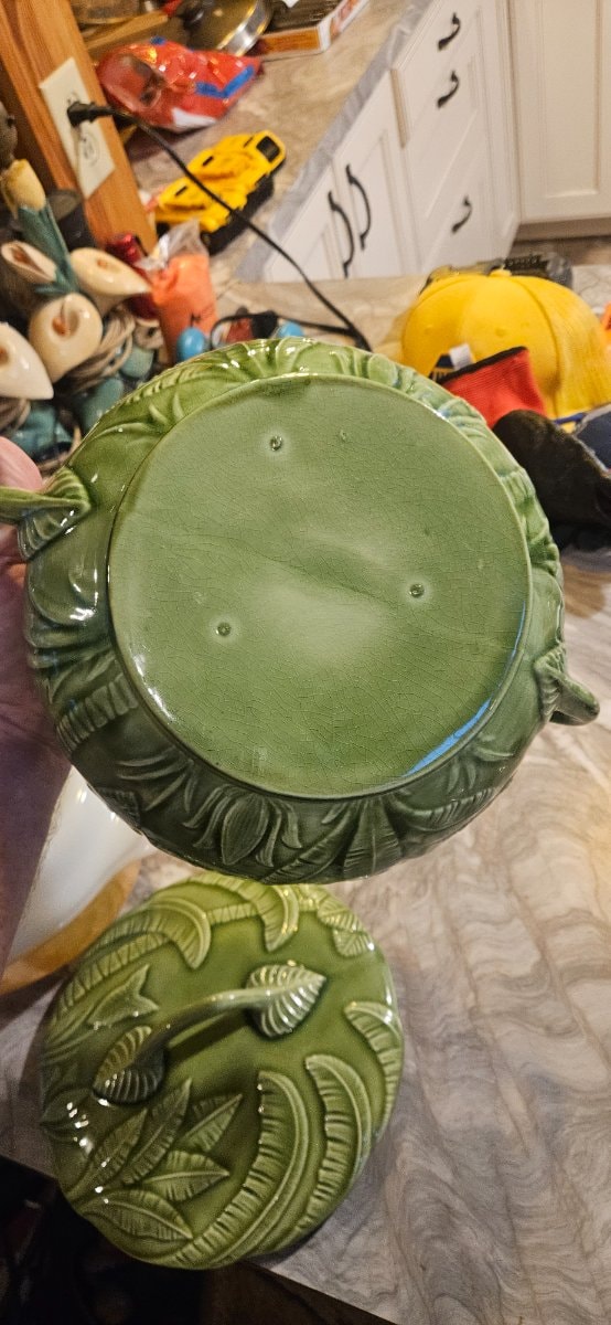 Portuguese potters in the 19th century began a revolution of 'trompe l'oeil' ceramics, making clay look like real fruit and foliage. This piece captures the mid-century obsession with tropical motifs and exotic greenery.