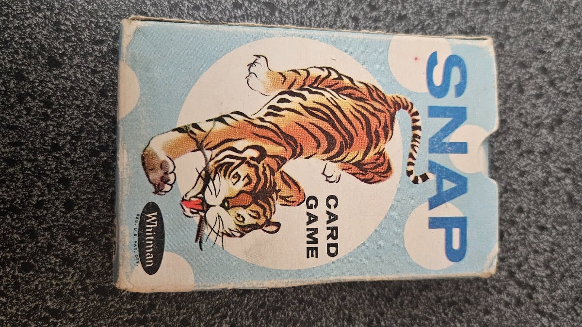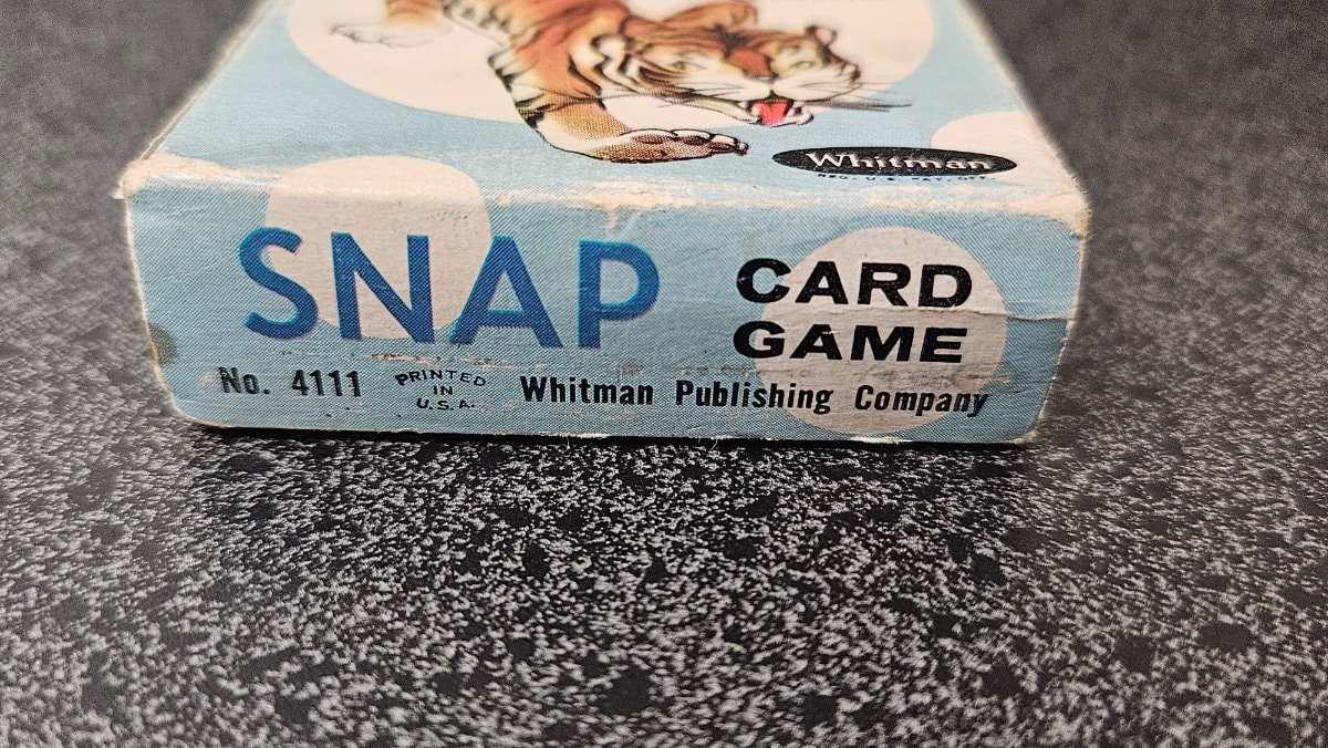 In the 1950s, this tiger wasn't just a mascot; he was an invitation to the 'fastest game in the house.' Whitman transformed simple matching into a high-stakes race for kids, where shouting 'Snap!' was the ultimate victory. This specific 'Tiger Box' edition is a nostalgic touchstone of the golden age of American family game nights.