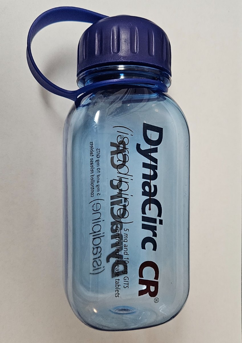 In 1998, DynaCirc CR hit the market with a high-tech delivery system. Pharmaceutical reps handed these bottles to doctors to keep the brand top-of-mind. It’s a relic from the 'Golden Age' of medical marketing before strict gift-giving bans.