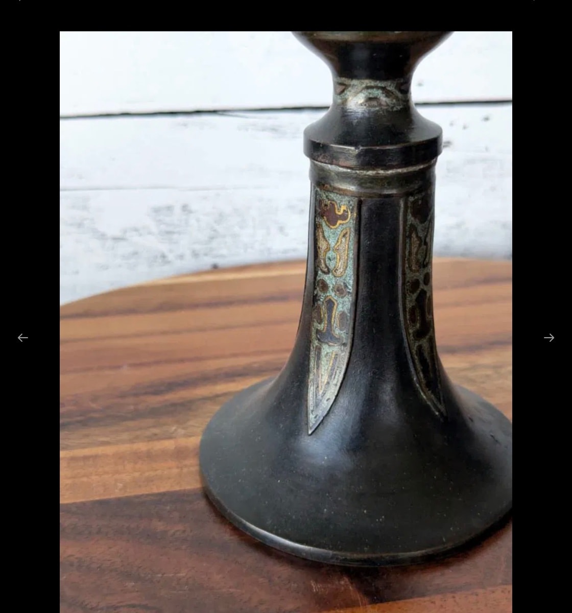 This is a hand-wrought bronze candlestick featuring intricate silver and copper inlay, a technique often associated with the 'Bidri' or 'Koftgari' traditions of the Indian subcontinent.