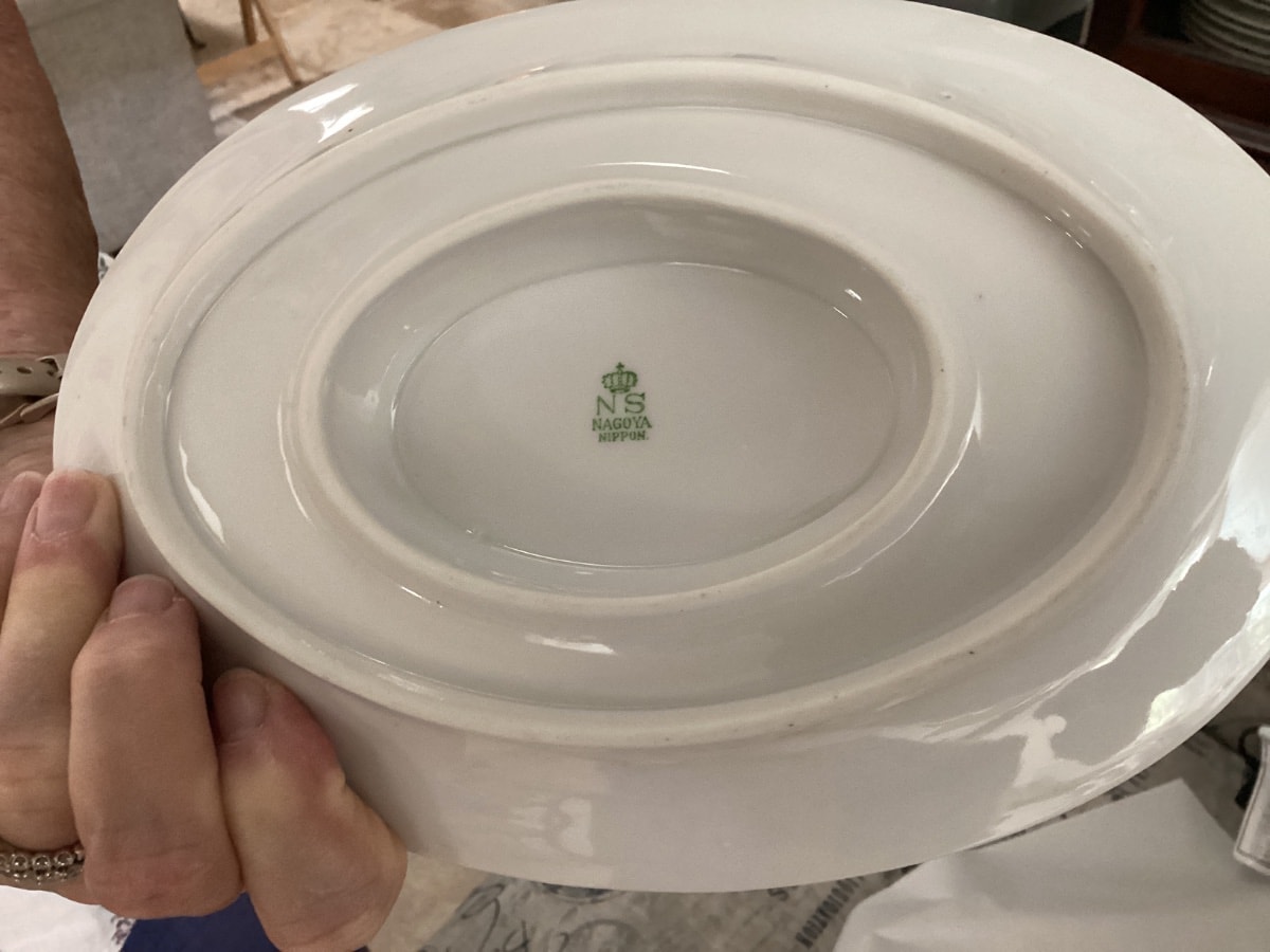 The 'NS' crown mark belongs to Nagoya Shokai, a prominent export company based in Nagoya, the heart of Japan's ceramic industry.