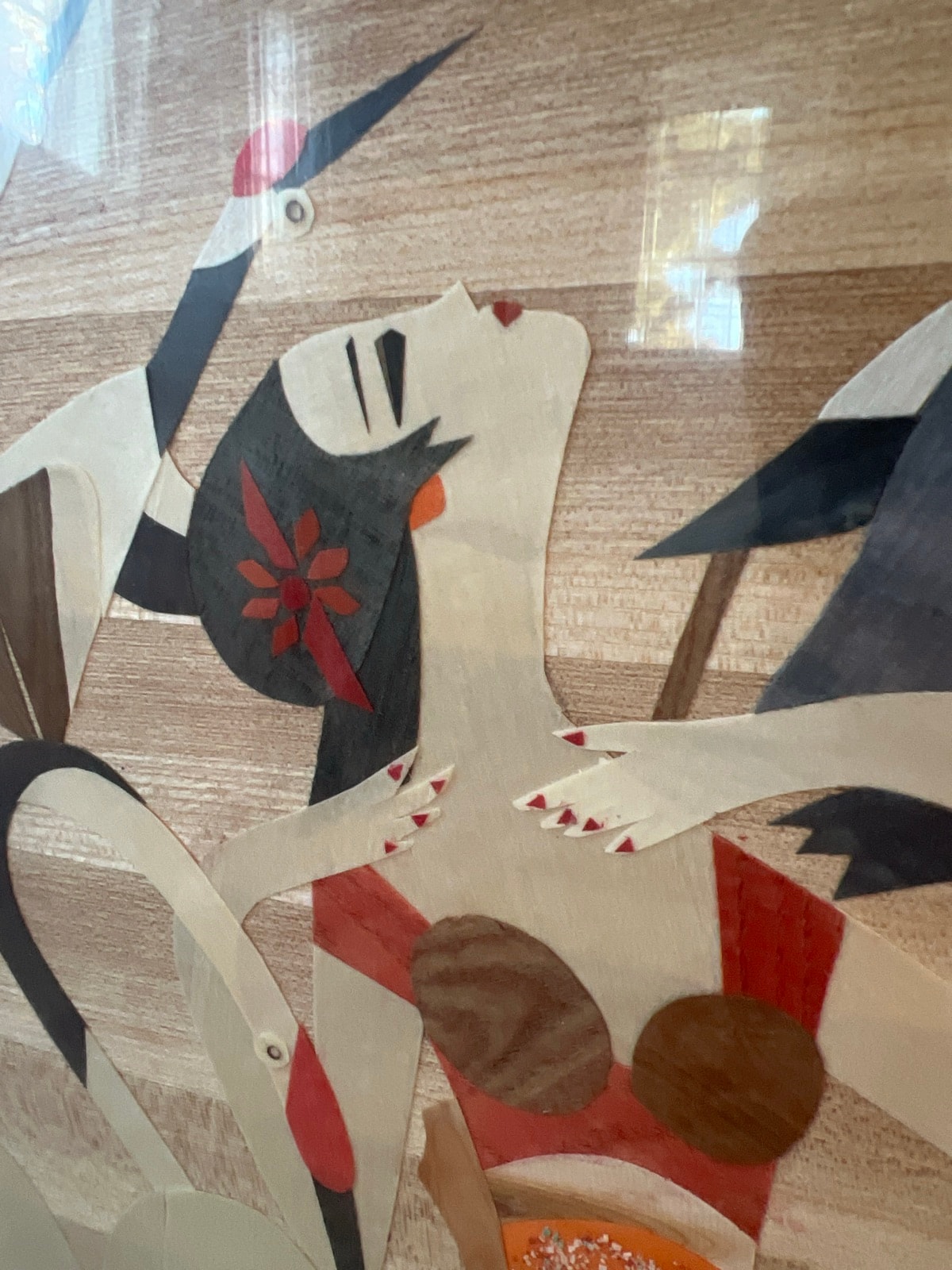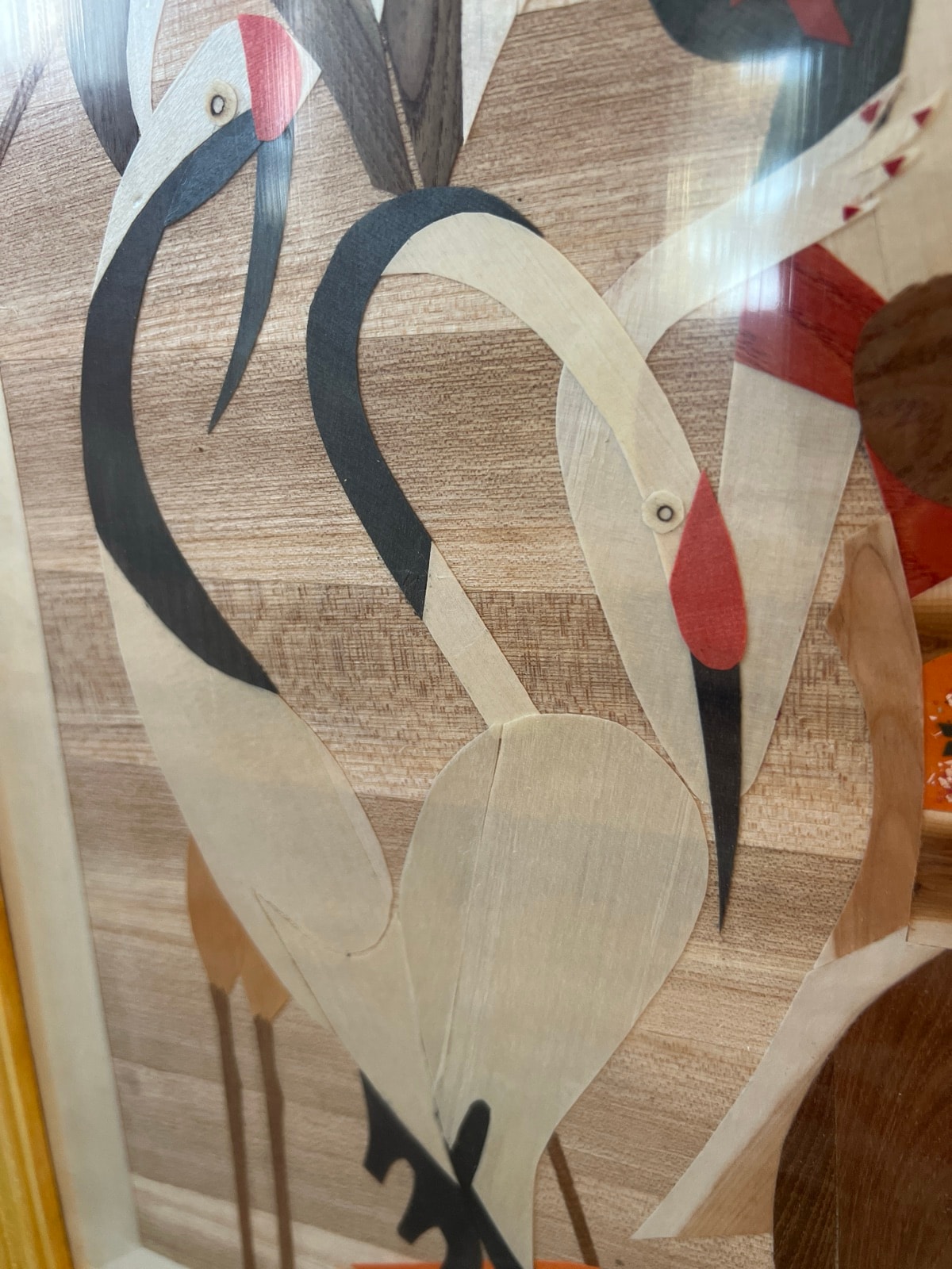In the 1960s, Vietnamese workshops transformed the ancient craft of marquetry into a modern art form. This 'wood-painting' depicts the sacred Crane Dance, a symbol of 1,000 years of life. It was a prized export for mid-century homes.