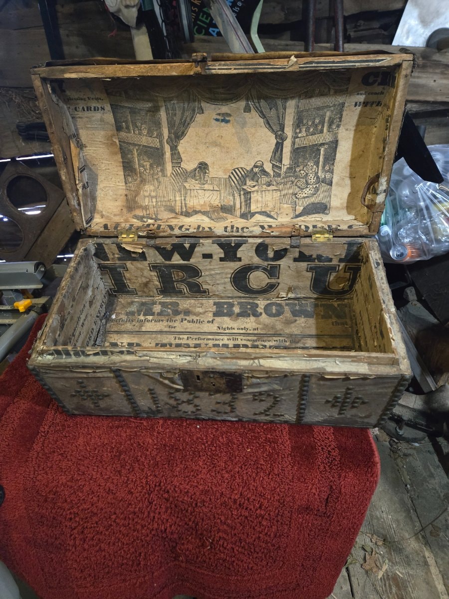 In 1832, when this trunk was commissioned, the American landscape was a rugged network of stagecoach routes and dusty trails. The owner, E. Fox, would have watched a craftsman hammer each of those brass tacks by hand to ensure their luggage was identifiable in a crowded coach boot.