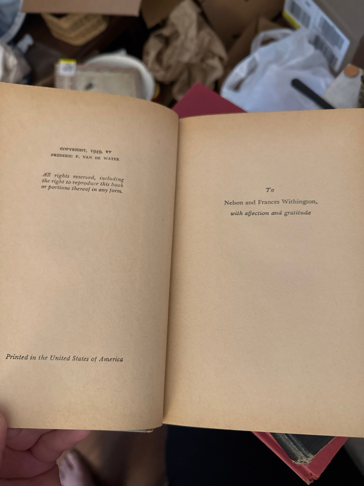 Published in 1949, this novel brings to life the gritty, double-war of Vermont's founding. Van de Water was a famed journalist who lived in Vermont and became obsessed with its local legends. This specific copy features a touching dedication to Nelson and Frances Withington, prominent figures in the author's Brattleboro social circle.