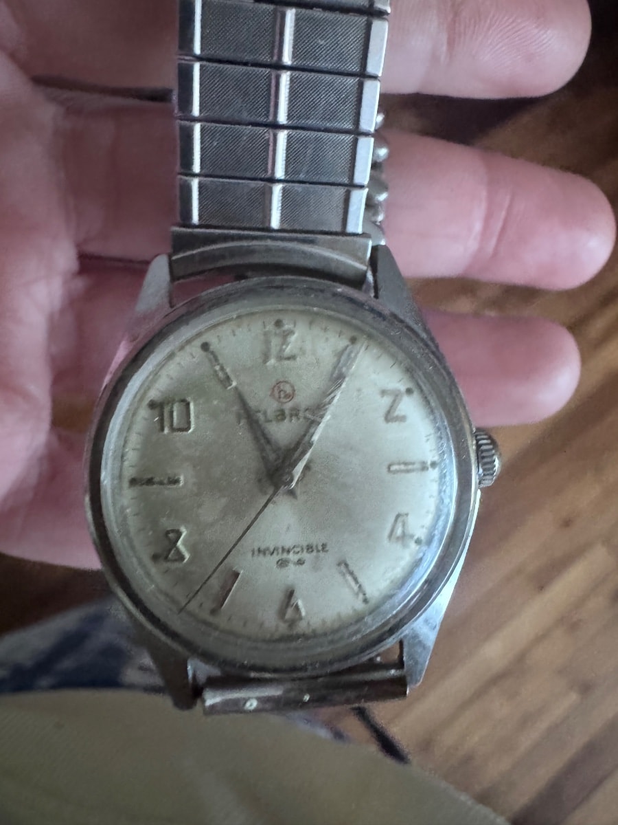 Helbros was founded in 1913 by the Helbein Brothers to bring Swiss precision to the American middle class. By the 1950s, these 'Invincible' models were marketed as rugged, dependable tools for the post-war working man.
