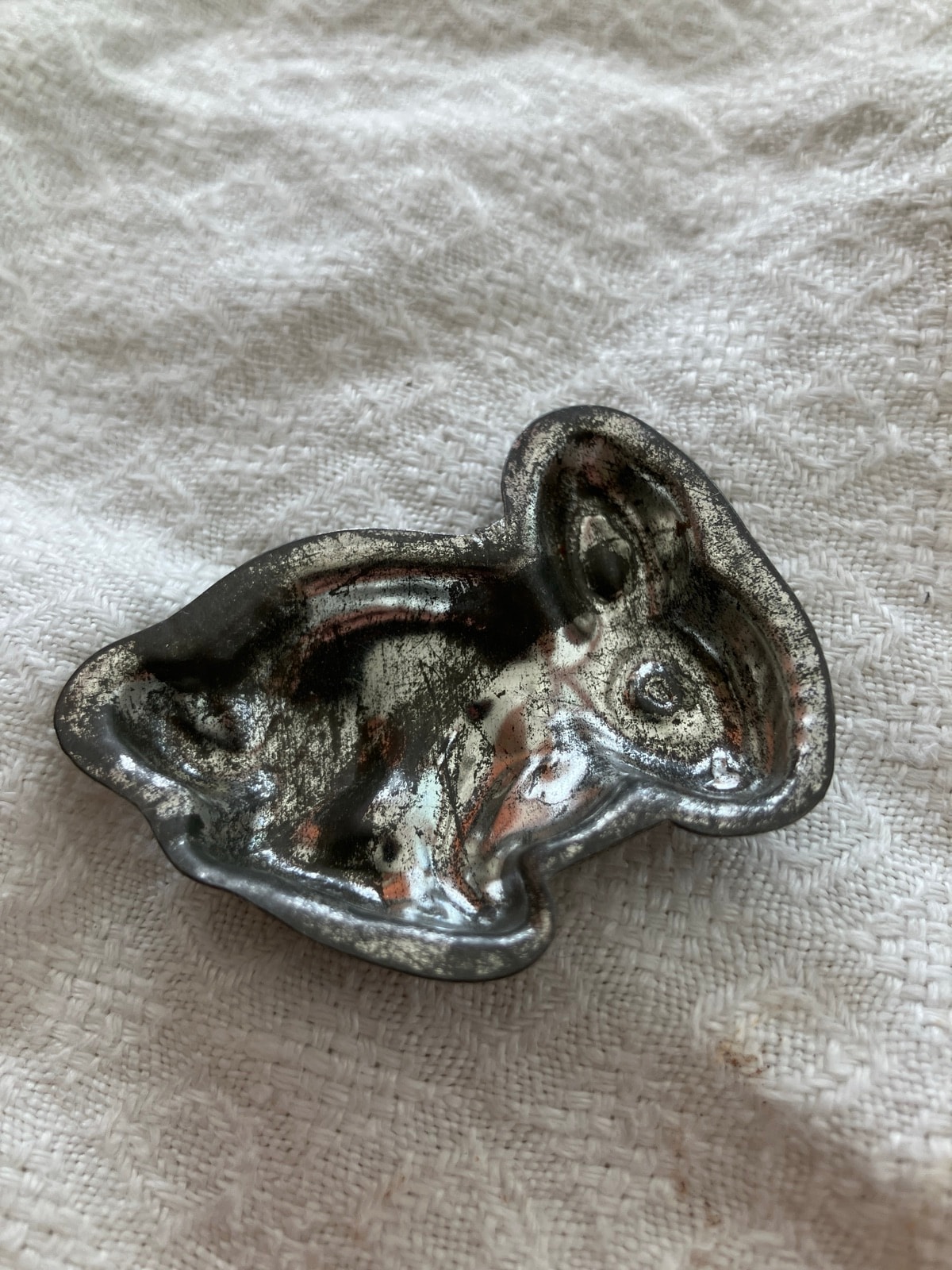 Victorian confectioners used these to create edible art for Easter displays. Before plastic, these hand-stamped metal shells were the only way to achieve such lifelike detail. This rabbit likely sat in a shop window in Paris or Dresden.