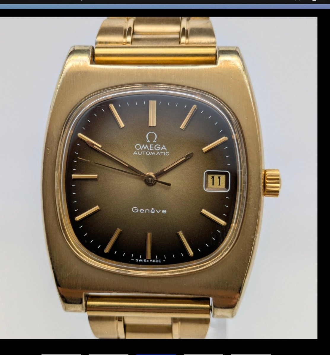 A quintessential 1970s timepiece featuring a 'TV Screen' cushion case and a striking gradient 'fumé' dial. This automatic model represents Omega's transition into bold, geometric aesthetics during one of the most experimental decades in horological design.