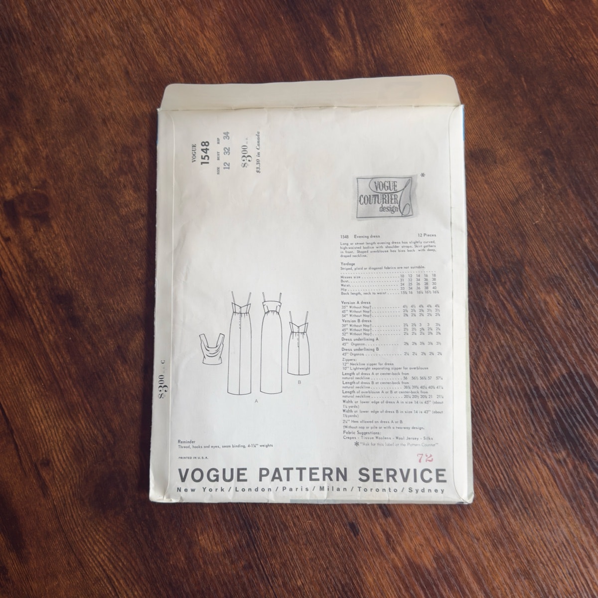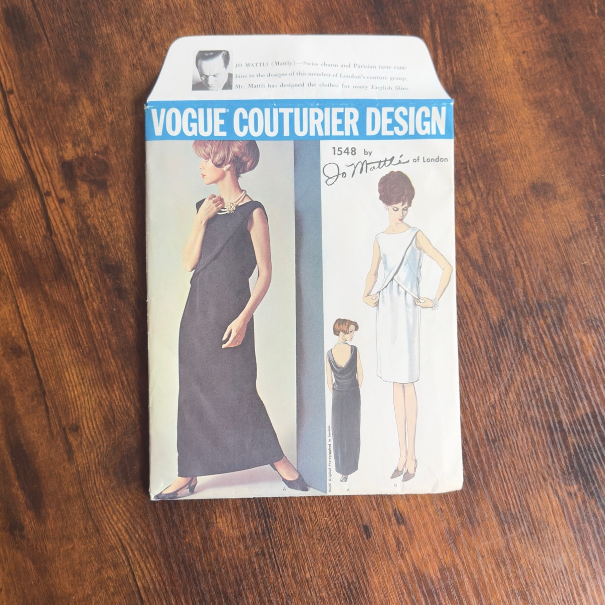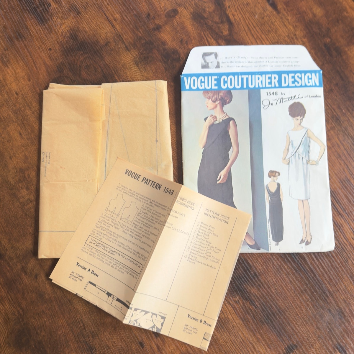 The market for high-end mid-century sewing patterns is highly condition-dependent, driven equally by fashion archivists and modern dressmakers reconstructing couture. Direct comparables establish a firm ceiling: two pristine, uncut (factory-folded) examples of this exact pattern (Vogue 1548) recently sold for $112 and $125. Secondary comparables for 'cut' (used) but complete 1960s Jo Mattli patterns generally settle in the $40 to $72 range, establishing a clear depreciation metric for use. Notably, modern digital reproductions of this specific design sell consistently for nearly $30, proving a strong, underlying aesthetic demand that creates a hard value floor for a complete 12-piece original. The fair market value range of $75 to $125 bridges a complete, gently used example to a pristine, uncut survivor.