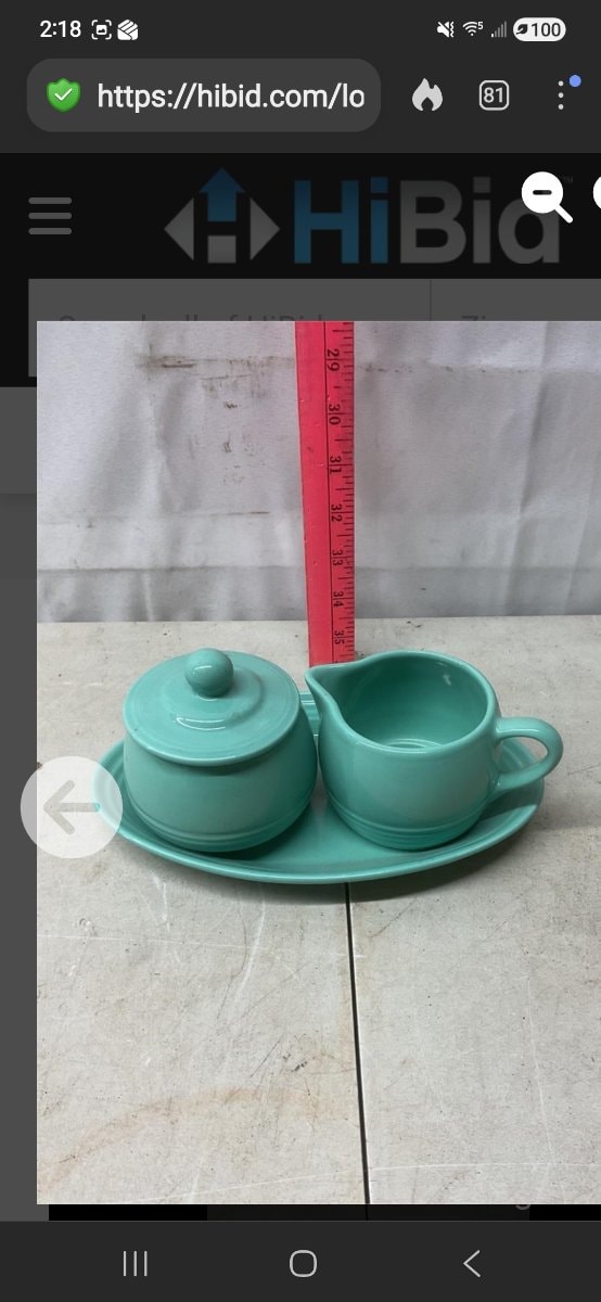 A heavy-duty, vitrified ceramic cream and sugar set in a vibrant turquoise glaze, featuring the iconic concentric rings synonymous with American Art Deco design.
