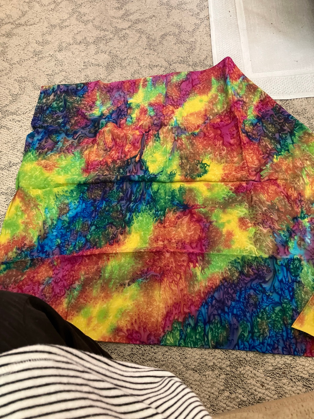 This is a vibrant, hand-dyed textile featuring a complex 'fractal' or 'ice-dyed' pattern on what appears to be lightweight silk. The organic, flowing transitions of color suggest a sophisticated resist or immersion technique rather than a standard commercial print.
