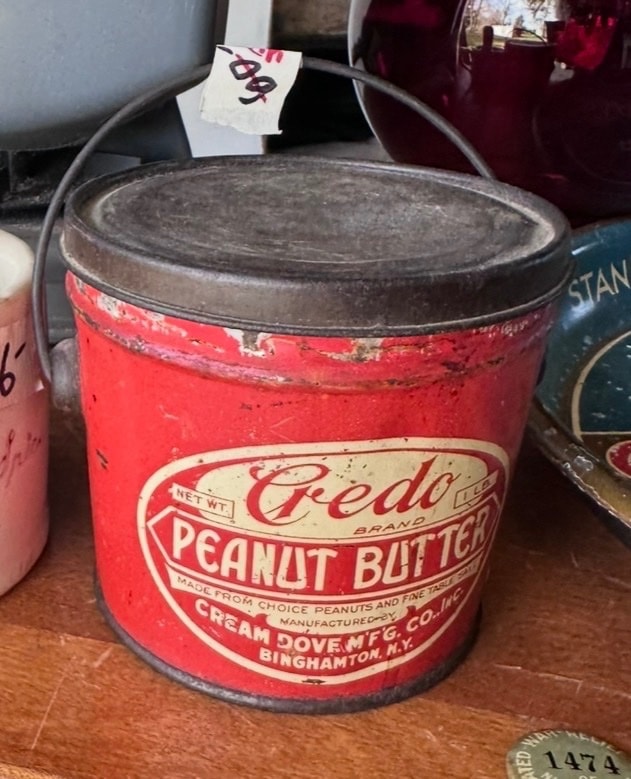 In the 1920s, peanut butter was a rising health food sensation. Cream Dove Mfg. Co. used this vibrant red tin to stand out on crowded general store shelves. It's a survivor from a time before plastic took over our kitchens.