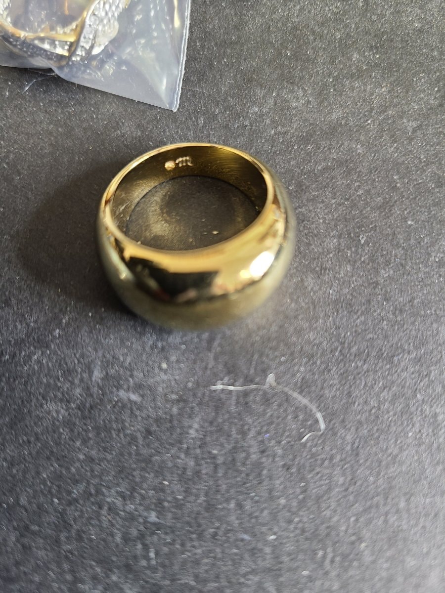 While the 'TR' or 'M' mark in a circle is a known maker's stamp, it often points to high-quality boutique manufacturers from the late 20th century, such as those in the Vicenza region of Italy or specialized New York ateliers. These workshops focused on 'heavy' gold looks that prioritized weight and luster over ornate gemstones.