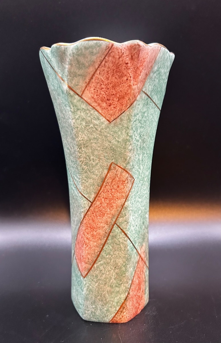 If the vase is exceptionally large (over 10 inches) and confirmed to be in pristine condition with zero wear to the gold luster, it could reach the $80-$100 range to a motivated postmodern decor buyer.