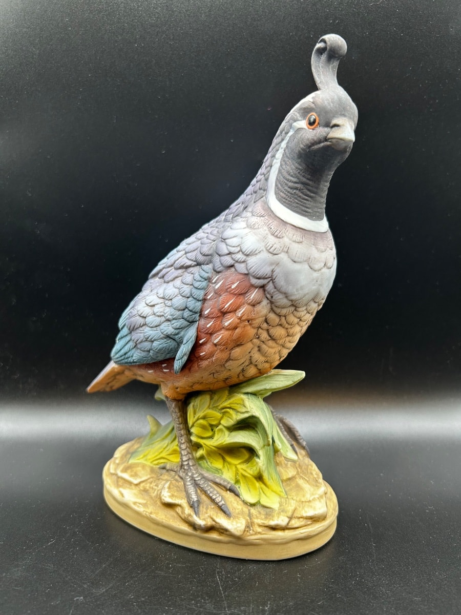 The figurine appears to be in excellent condition with the fragile topknot and base leaves intact. Any tiny chips to the tips of the leaves or the topknot would significantly reduce the value by 40-50%. Value is driven by the popularity of the California Quail as a state symbol and the reputation of the Sadek studio.