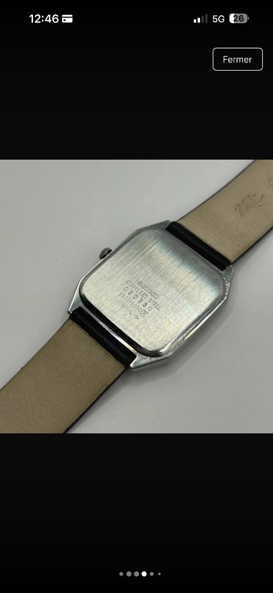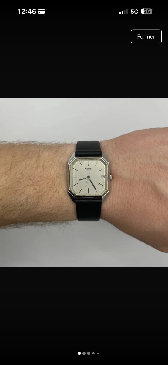 The case shows honest wear consistent with age, and the strap is a modern ZRC replacement. The dial appears exceptionally well-preserved, which is the most critical factor for vintage Seiko collectors. Excellent dial condition commands a premium.