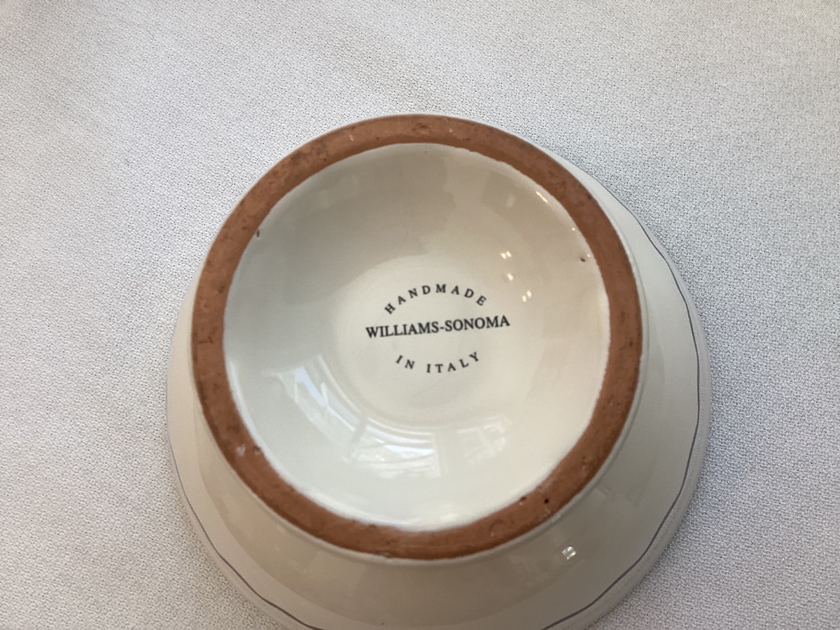 A charming example of Italian earthenware featuring a hand-painted olive branch motif, commissioned for the iconic American culinary retailer.