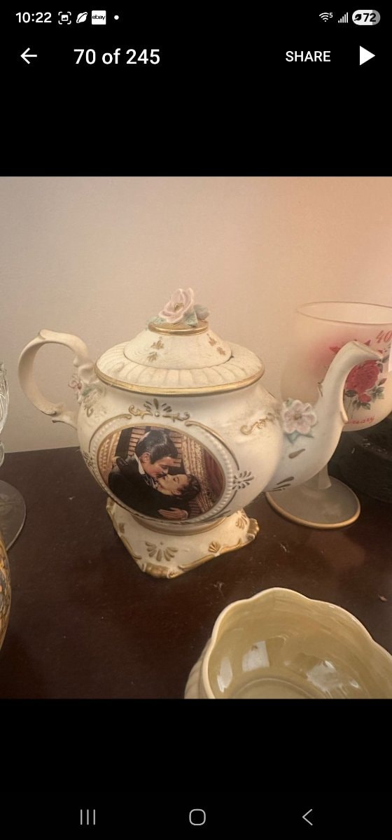 Released decades after the 1939 film, this teapot captures the enduring obsession with Hollywood's Golden Age. It turned a scandalous cinematic romance into a domestic centerpiece for a new generation of collectors.