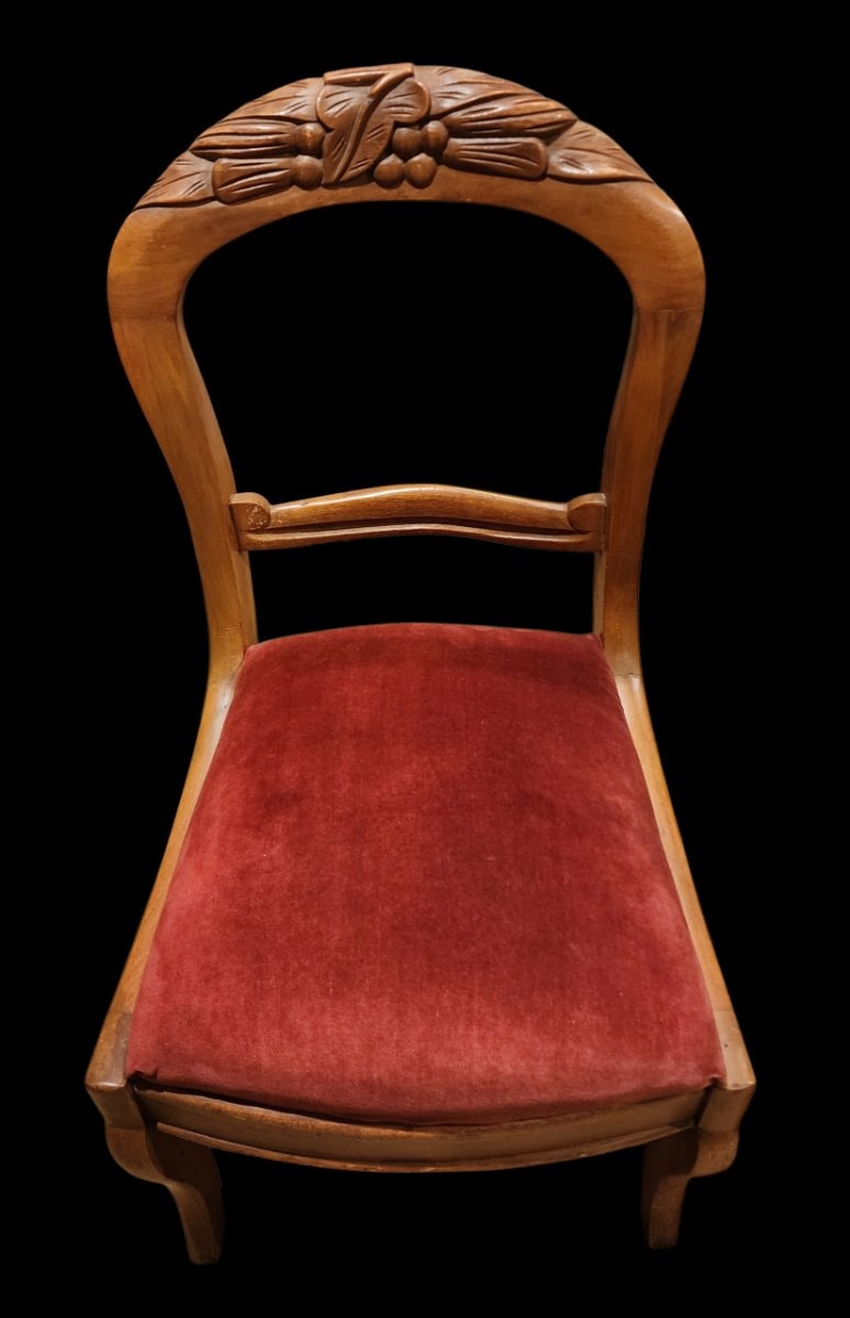 In the mid-1800s, the parlor was the heart of the home, a stage where families displayed their refinement to guests. These chairs were designed with that social theater in mind; their open backs were specifically shaped to accommodate the massive, voluminous…