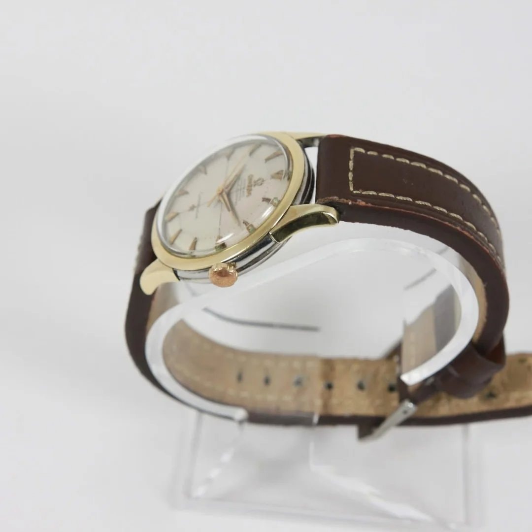 The market for vintage Omega Constellations remains robust, particularly for 1950s examples with distinctive dial configurations like the faceted pie-pan and applied arrowhead markers. Collectors heavily prioritize originality, with unpolished cases, crisp caseback medallions, and untouched dials commanding significant premiums over refinished or over-polished examples. Gold-capped models offer an accessible entry point compared to solid 18k gold references, but condition dictates whether they trade near $1,000 or push toward $3,000.