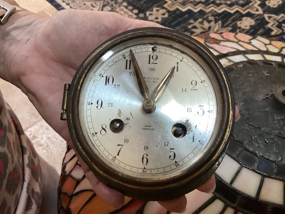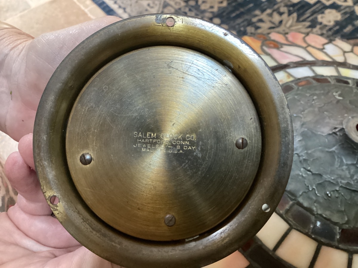 The Salem Clock Company of Hartford was a respected American manufacturer known for high-quality nautical instruments. They often utilized precision movements from companies like Seth Thomas or Chelsea, catering to the yachting elite and commercial mariners.