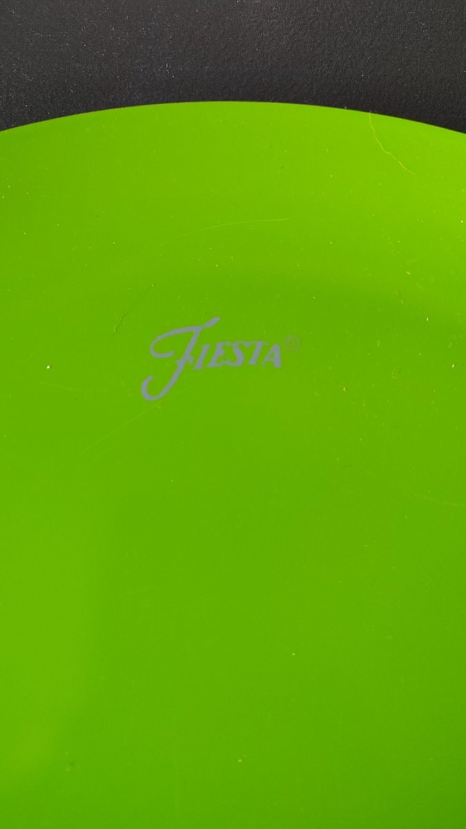 A vibrant, vitrified ceramic dinner plate featuring the iconic concentric ring pattern and bold solid-color glaze that defined American tabletop design.
