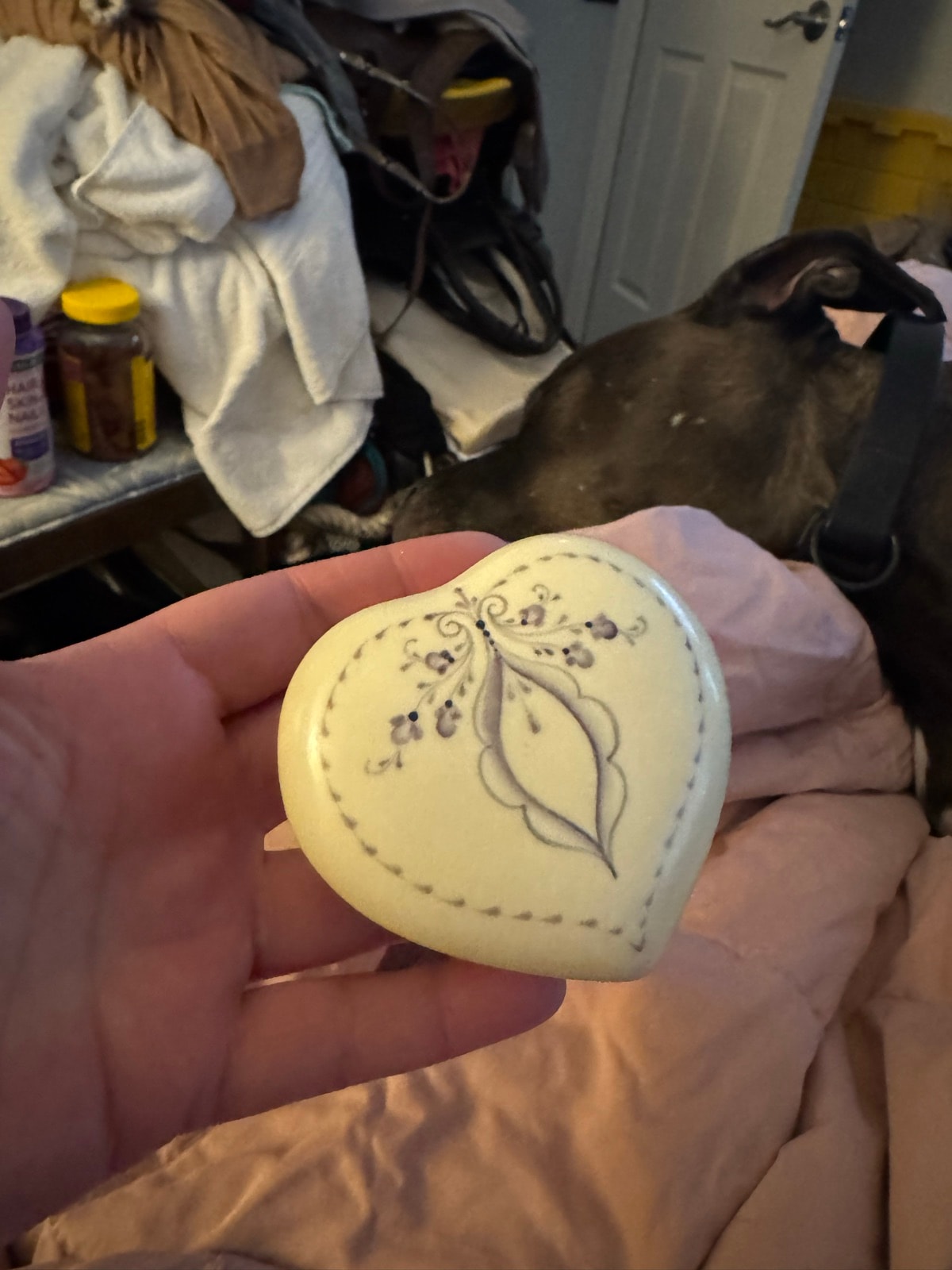 Folk art in the 1970s saw a massive revival as people sought a connection to handmade traditions. This piece, signed 'Benji,' likely came from a small studio or a dedicated artisan who mastered the delicate scrollwork of European immigrant styles. It was designed to hold small treasures like rings or secret notes, turning a simple dresser into a gallery of heritage.